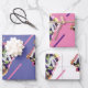 Feuille De Papier Cadeau Fleurs violettes et oiseaux