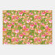 Trois feuilles de papier d'emballage présentent des fleurs d'hibiscus rose tropical et de corail sur un arrière - plan orange (ou toute couleur que vous choisissez). PLUS de couleurs dans notre magasin.