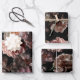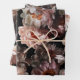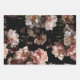 Trois feuilles de papier d'emballage avec motifs floraux photographiques. Les ombres sombres et l'arrière - plan noir confèrent ce design à un thème traditionnel, nocturne et sombre et morose. Un beau tableau traditionnel de botaniques et de fleurs dans les tons rose et roux. Feuilles de papier à enveloppement floral Rembrandt traditionnel