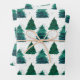 Des pins verts et des points sur un arrière - plan blanc, ce papier d'emballage est amusant pour les cadeaux de vacances.
