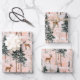 Ce papier d'emballage hivernal fantaisiste à la merveilleuse allure d'une forêt enneigée. De grands et majestueux arbres roses délicats ornent leurs branches d'une épaisse couche de neige. Des cerfs gracieux évoluent librement au milieu des arbres, ajoutant une touche d'élégance au paysage hivernal. L'ensemble est un design charmant et festif qui reflète l'esprit de la saison.