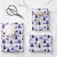 Papier d'emballage violet de Noël orné d'arbres caprices dans une forêt à thème de Noël.