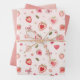 Feuille De Papier Cadeau Fraises D'Aquarelle Douce Coeurs Et Rubans