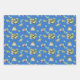 All occasion wrapping frogs on blue. The frogs are done in watercolor.