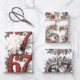 Set of 3 different retro-vintage style Christmas wrapping paper sheets with the funny Six Seven brainrot meme. Design with the numbers 6 and 7 with a festive Holiday theme design.