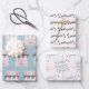 Ces papiers d'emballage présentent des dessins et des citations amusantes pour Noël. Le premier drap comprend une cheminée festive avec des bas, des brosses à bouteilles roses et des boules de disco. Le deuxième dit "s'allumer" et le troisième dit "mieux vaut ne pas pout".