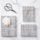 Feuille De Papier Cadeau Gingham Dessiné à la main Moderne Mignon Gris Blan