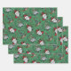 Les feuilles de papier d'emballage de Noël présentent de mignons gnomes de Noël sur un arrière - plan vert, amusant pour votre cadeau de vacances.