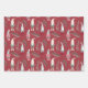 Feuille De Papier Cadeau Gnomes de Noël roses et rouges