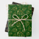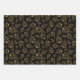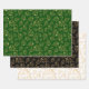 Feuille De Papier Cadeau Gold Christmas Trees on Green, Black, White