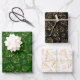 These elegant and glamorous wrapping paper sheets are versatile and can be used for giving gifts or art and craft projects. The design features gold Christmas trees on a green, black and white background. Perfect for Christmas and the holiday season.
