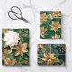 Feuille De Papier Cadeau Golden Poinsettia Flower sur Green Christmas