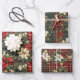 Feuille De Papier Cadeau Green Red Plaid & Poinsettias Noël