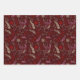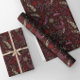Feuille De Papier Cadeau Gribouillages floraux rose et ivoire en bordeaux.