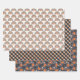 Un ensemble de trois feuilles de papier d'Halloween dans une palette de couleurs assorties avec des arcs-en-ciel boho dans un style Halloween avec un citrouille, un plaid aux couleurs Halloween, et un motif amusant de chauves-souris et citrouilles et étoiles contre un arrière - plan gris foncé. Le papier d'emballage parfait pour les baby showers d'Halloween, les anniversaires d'Halloween et les fêtes d'Halloween !