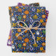 Il s'agit d'un motif mignon et capricieux avec des fantômes éffrayants, des citrouilles, des feuilles et des fleurs d'automne. Il est offert en trois couleurs arrière - plans : bleu, violet et noir. Ce papier d'emballage est parfait pour toute fête d'anniversaire à thème halloween, de baby shower ou d'halloween pour enfants.