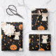 Une sélection de trois feuilles de papier d'emballage dans les modèles et les couleurs d'Halloween pour vos besoins de cadeaux.