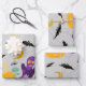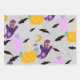Ces feuilles de papier d'emballage d'Halloween fantaisistes présentent des couleurs et des fantômes d'Halloween non traditionnels, des toiles d'araignée, des champignons, des chauves-souris et des fleurs.