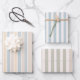 Elevate your gift presentation with this elegant Hamptons-inspired striped wrapping paper set. Featuring soft duck egg blue, warm cream, crisp white and calming sage green stripes, this coordinated trio brings a refined coastal style to every gift.