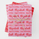 The sheets are light pink and red. All of them have a text pattern for the recipient's name in a script and the phrase Happy 21st Birthday. The name (Shown: Elizabeth) appears in an elegant script. All of the text can be edited.