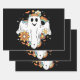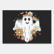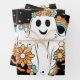 Envelopper des feuilles de papier avec l'illustration d'un fantôme souriant. Décoré de fleurs, arcs-en-ciel et chauves-souris.