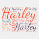 Harley. Montrez et portez ce populaire beau prénom féminin conçu comme un nuage de mots coloré fait de lettrage à main horizontale et verticale dans différentes tailles et des couleurs fraîches adorables. Portez votre nom américain positif ou montrez au monde que vous aimez ou adorez. Merch avec cette oeuvre d'art en texte souple est un grand cadeau, pas seulement dans le mois de l'histoire des femmes, ou cadeau d'anniversaire.