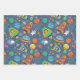 Space Hippo And Lion Planet Motif enveloppant des feuilles de papier de Ricaso - une faune amusante et délicieuse dans un ensemble de papier spatial - avec un lion, hippo et raccoon dans des tenues d'astronautes avec des fusées et des planètes