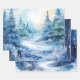 Feuille De Papier Cadeau Hiver Fairytale Snowy Winter Scène Bleu et Blanc