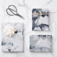 Ces feuilles de papier d'emballage d'hiver ou de Noël ont une aquarelle art nature scène avec un cerf de forêt, un hibou en vol, des arbres à feuillage persistant, des montagnes enneigées et une pleine lune, créant une nature rustique motif sur un arrière - plan de blanc enneigé, gris argenté ou bleu foncé. Tout le monde va adorer cet emballage cadeau élégant.