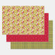 Ce trio amusant de motifs présente des dessins à la main rétro classiques qui comprennent des saints et des baies sur le rose rétro, des pois roses sur le rouge, et un plaid en vichy vert amusant classique.