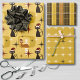 Feuille De Papier Cadeau Jaune Retro Mid Century Moderne Chat Noël