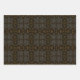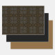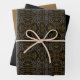 Ensemble de 3 feuilles de papier d'emballage pour cadeaux, 1 noir uni, 1 or uni et 1 avec un motif à motif géométrique symétrique à six côtés en jaune doré crémeux sur fond noir, illustration de design graphique artistique original par TheFabricSeal sur Zazzle #ZazzleMade https://www.zazzle.com/store/thefabricseal