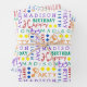 Personnalisez cette jolie couleur arc-en-ciel et le papier d'emballage Happy Birthday blanc en trois modèles gratuits en ajoutant le nom et l'âge de votre enfant pour un emballage cadeau d'anniversaire personnalisé. La portion de nom est conçue pour être customisée séparément pour chaque feuille afin que ce papier d'emballage coloré d'anniversaire arc-en-ciel puisse être personnalisé pour plusieurs enfants - ou adultes! Les adultes aiment aussi les trucs amusants. La feuille 1 présente du texte rouge, orange, jaune, vert, bleu et violet sur un arrière - plan blanc, la feuille 2 est blanche avec du texte dans les couleurs arc-en-ciel et la feuille 3 est un simple arrière - plan blanc et un collage typographique de polices violet, bleu, vert, jaune, orange et rouge. Parfait pour les fêtes d'anniversaire du 1er au 99e, ce mot d'art coloré et fantaisiste joyeux enveloppement cadeau d'anniversaire en couleurs arc-en-ciel et blanc ajoutera une touche personnalisée à votre cadeau de cadeau pour n'importe quel anniversaire.