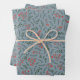 Ferme campagne bleu foncé, rouge et vert foncé feuillage, couronne, feuilles, verdure, rustique motif mignon draps de papier cadeau de vacances. Lot de 3. Idéal pour Noël et les fêtes.