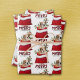 Le motif répété sur ces feuilles de papier d'emballage de Noël est l'image d'un chiot Bulldog brun et blanc qui sort d'un sac cadeau de Noël rouge et blanc. Derrière lui se trouve une branche de baies saintes et rouges. Stylisé rouge et noir buffle texte plaid dit MERRY CHRISTMAS". L'arrière - plan sur deux des feuilles de cet ensemble est blanc, tandis que la troisième feuille est argent.