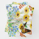 Cet ensemble d'objets artisanaux de découpage ou d'enveloppes cadeau comprend 3 feuilles de papier uniques. Le papier présenté a été créé à partir d'illustrations aquarelles de la vigne fleurie de Periwinkle et des tournesols jaunes.