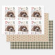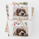 Une collection amusante et colorée de papier d'emballage de vacances. La première feuille présente une photo préférée avec la ligne PAWS LOVE AND JOY en typographie multicolore. La deuxième feuille est beige avec un motif à pois rouge brûlé et la troisième est dans un vert de vacances moderne avec un motif de Noël abstrait.
