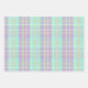 Ensemble de trois feuilles de papier d'emballage. Chaque drap présente un motif plaid différent dans les tons pastel rose, violet, vert, bleu, vert et jaune.