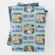 Ajoutez cet assortiment personnalisé de feuilles d'emballage cadeau avec vos photos et un thème design de Menorahs bleu clair et des arbres de Noël pour une célébration interconfessionnelle personnalisée de Chrismukkah. Envelopper la feuille de papier Un est placé sur un arrière - plan bleu pastel avec un texte de typographie bleu profond alternant avec deux de vos photos préférées encadrées en bleu moyen. Papier cadeau Deux a un arrière - plan bleu foncé et un motif à damier de style bleu pâle des arbres et des menorahs pour Noël et Hanoukka et deux autres de vos photos avec des coins arrondis rimpés en bleu clair. Papier à envelopper Trois est un design typographique rempli de MERRY et HAPPY et CHRISMUKKAH dans un mélange de polices bleu clair avec le nom de votre enfant niché dans le design, accentué de plus d'arbres et de menorahs. Facile à personnaliser, cet assortiment unique d'enveloppement cadeau Chrismukkah a été conçu avec l'esprit des familles chrétiennes et juives interconfessionnelles et ajoutera une touche personnalisée à vos festivités de vacances, quel que soit votre lieu de célébration.