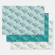 Ensemble de 3 feuilles de papier d'emballage dans les tons verts avec la mignonne typographie lunaire, écrit à la main avec coeur d'amour et doodles.