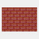 Ce papier d'emballage rouge foncé a un script d'or faux (pas de feuille) qui dit Joyeux Anniversaire. Il contient également du texte blanc pour le nom du destinataire. (Montré : Samantha) Le texte est dans un motif.