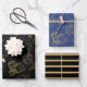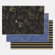 Ces draps d'emballage modernes présentent des ornements cadeaux et anniversaires classiques, de l'or, des couleurs noires et bleues et rayent heureux motif d'anniversaire.