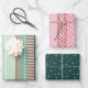 Ensemble de trois feuilles de papier d'emballage avec des motifs de Noël joyeux et colorés. Conçu par Marketa Stengl.