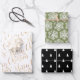 Le jeu de papier cadeau de Noël met en vedette la calligraphie moderne joyeux script de Noël, les flocons de neige gras et les arbres de Noël en fausse feuille d'or, vert et noir. Customisez la couleur arrière - plan avec votre choix.