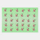 Cet ensemble de feuilles de papier d'emballage a une image répétée du Père Noël debout près d'un petit arbre décoré dans la neige, entouré de petits animaux et d'oiseaux mignons tenant un panneau vert Joyeux Noël entouré d'un saint coloré et des arcs sur un arrière - plan vert clair.