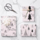 Beau et élégant noir et rose Joyeux ensemble de papier d'emballage Noël est parfait pour ceux qui aiment une esthétique simple et minimaliste. Les arbres de Noël ont une minuscule étoile dorée. Donc joli avec la typographie manuscrite. Voir la coordination des articles dans notre boutique, Enchanted Finch.