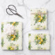 Wrapping paper sheets with a lovely illustration of a bouquet of lemons surrounded by white blossoms leaves and sprigs.
