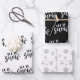 Ensemble de 3 designs en noir et blanc, blanc et noir et, gris et blanc. Deux de ces dessins ont une écriture manuscrite qui dit "laissez tomber" et l'autre un motif de coeurs et de flocons de neige. Parfait pour un emballage cadeau de Noël simple et minimaliste.