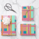Feuille De Papier Cadeau Lignes géométriques jouées mignonnes en bleu