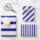 Feuille De Papier Cadeau Lilac et rayures blanches motif avec bleu marine
